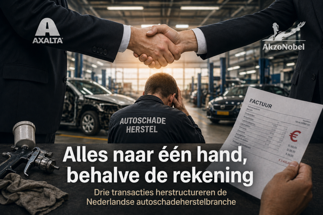 Dit zijn publiek aangekondigde, gedocumenteerde en parallel lopende transacties, die gezamenlijk de structuur van de Nederlandse autoschadebranche fundamenteel wijzigen — zonder directe betrokkenheid van de eindgebruiker of de onafhankelijke ondernemer.